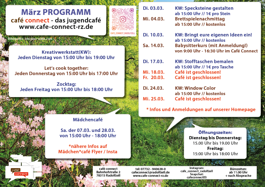 Wöchentliche Angebote von Dienstag bis Freitag bei uns im café connect (in den Ferien finden gesonderte Angebote statt)